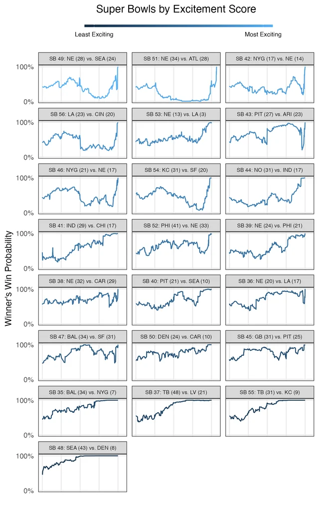 This week on the Sunbound Blog we wanted to share an amazing article written by our CTO Stuart Mason that measures the most exciting Super Bowls throughout the years. When he isn't building the senior living industry's most sophisticated finance and payments platform, Stuart has a passion for all things data science. You can find a link to Stuart's article here, as well as a brief description of his work below. We hope you enjoy this exciting special feature of the Sunbound Blog, and make sure to check back weekly as we continue to bring you the most helpful information and news in the world of senior care.