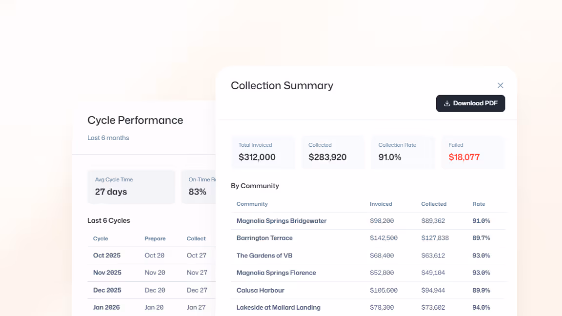 Real-time visibility shows what’s submitted, pending, denied, or paid across every community, enabling faster intervention, clearer reporting, and fewer surprises.