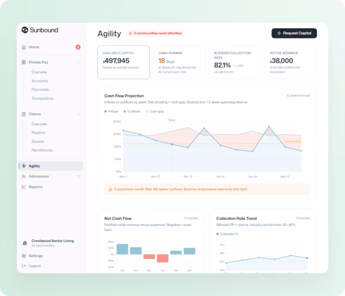Timing gaps do not have to disrupt staffing, vendor payments, or resident experience. Agility keeps teams focused on running communities, not managing cash stress.