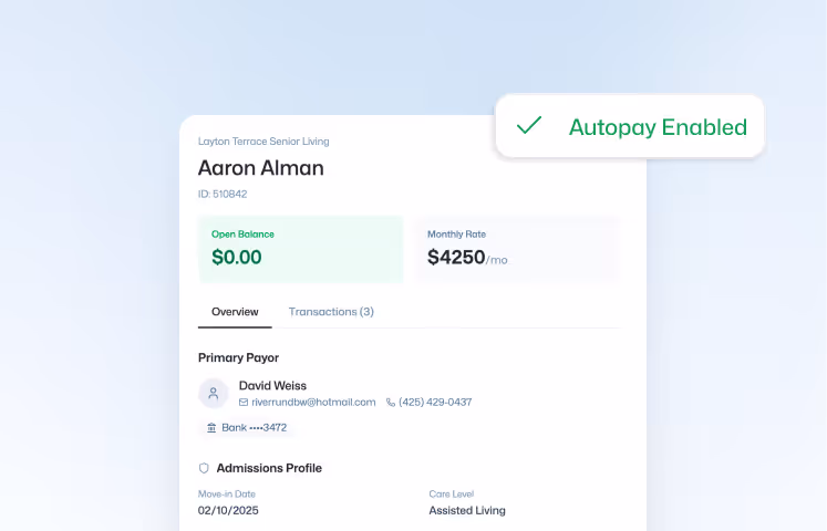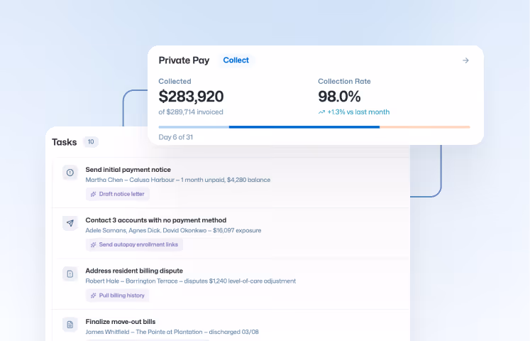Move-ins require deposits, prorated rent calculations, and resident setup across multiple systems. Manual errors here lead to bad first impressions for families and inaccurate first bills that delay payment even further.