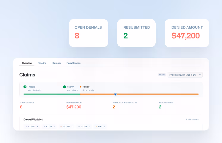 Once a claim is submitted, most teams have no idea where it sits. Is it pending, processing, or rejected? You find out once a paper EOB arrives 45 days later. You proactively can’t fix what you can’t see.