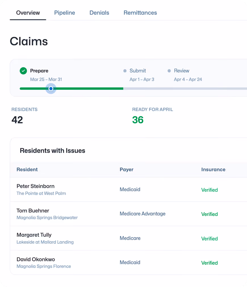 Your BOMs are experts in resident care, not insurance bureaucracy. Forcing them to spend hours on hold with payers leads to burnout, turnover, and neglected resident families. Have them focus on care instead.