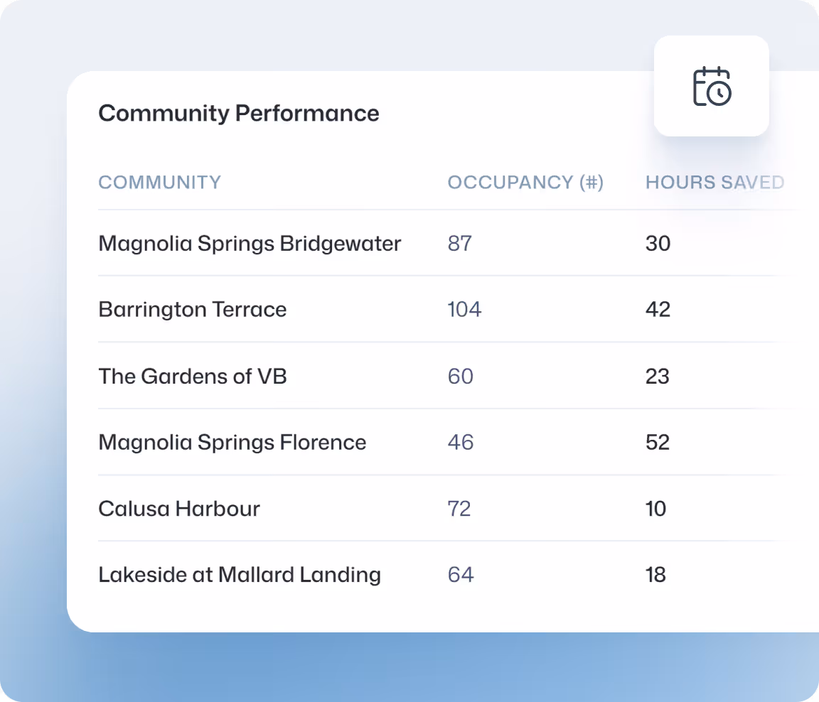 Standardize every community on a single efficient playbook. Return 40+ hours a month to your teams so they can focus on care.